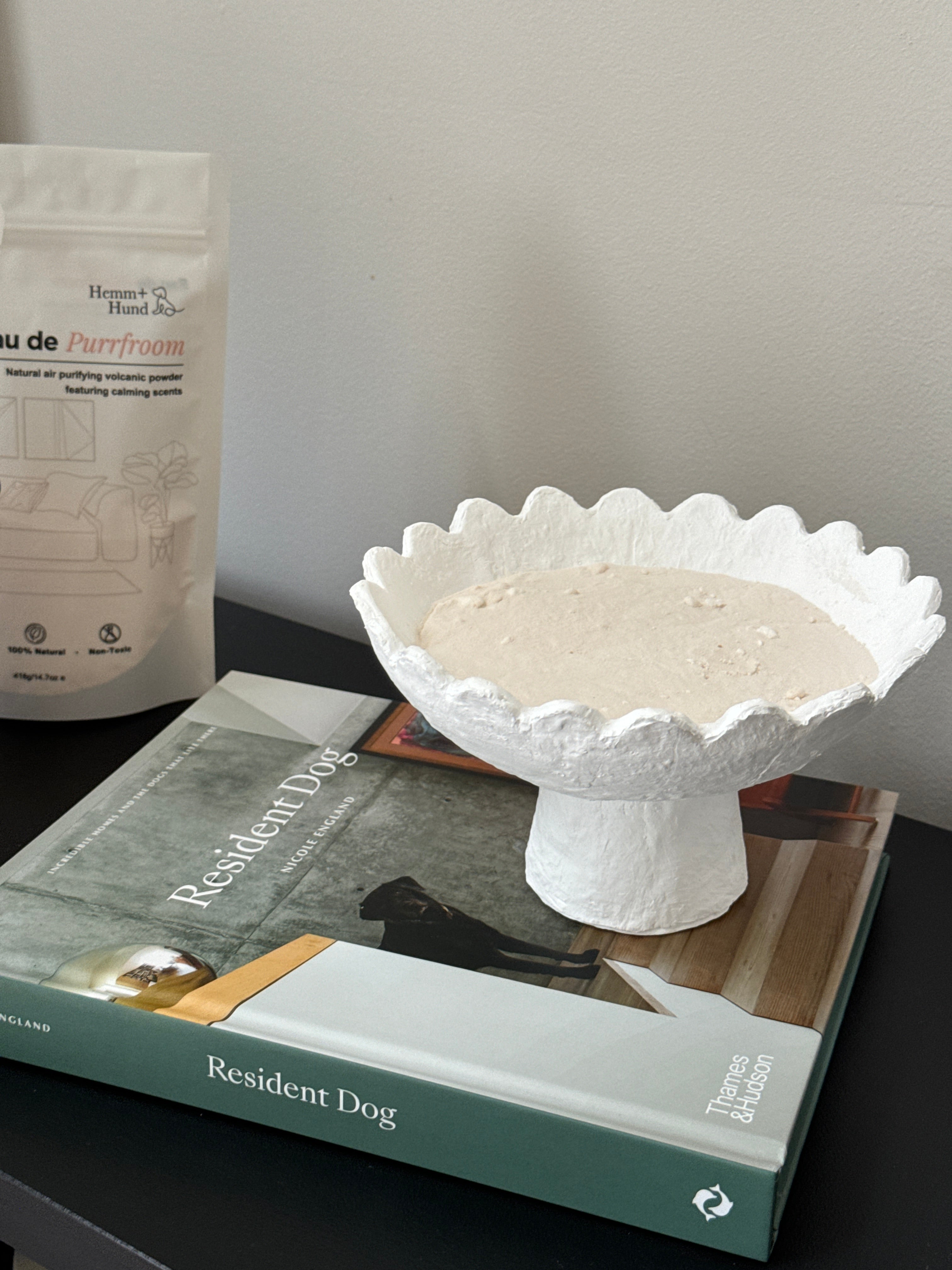 It’s super simple! Just give the pouch a good shake, pour the powder into your favourite bowl or vessel, and place it wherever pet odours tend to linger.